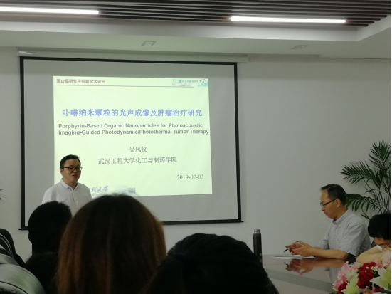 7月3日下午,应tyc234cc 太阳成集团,绿色化工过程教育部重点实验室,湖北省新型反应器与绿色化学工艺重点实验室邀请,tyc234cc 太阳成集团tyc234cc 太阳成集团吴风收博士在流芳校区化工大楼604会议室作了一场题为“Porphyrin-Based Organic Nanoparticles for Photoacoustic Imaging-Guided Photodynamic/Photothermal Tumor Therapy”的学术报告。报告会由tyc234cc 太阳成集团副院长龙思会教授主持,tyc234cc 太阳成集团师生近100余人聆听了报告。