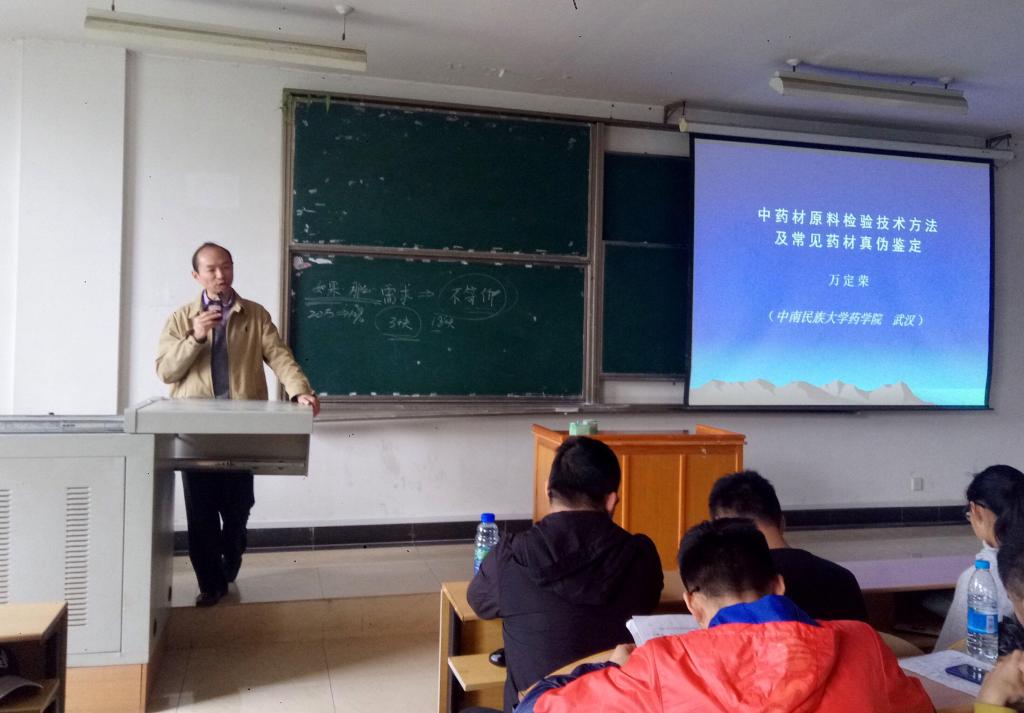 4月27日上午,应我校tyc234cc 太阳成集团的邀请,中南民族大学药学院万定荣教授在流芳校区一教楼L1207教室做了一场题为“中药材原料检验技术方法及常见药材真伪鉴定”的学术报告。